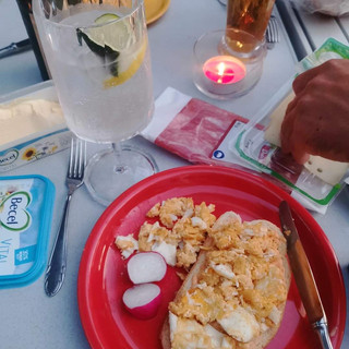 Nous avons été reçus comme des rois, grande table remplie de nourriture, quelques verres et une ambiance incroyable ! Pour couronner le tout, pas besoin de la tente, on nous a préparé deux beaux transats en guise de chambre sous l'auvent du camping car 👌🏻😁