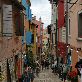 🇬🇧 We join again the coast to visit the beautiful village of Rovinj. Fishing boats, cathedral on the top of the hill and colorful streets. Even if there are a lot of people, we feel under the charm of this city.. We enjoy the beach and the shadows of the trees during the afternoon and when we left in the end of the day, we met a group of funny German people. They propose us to drink so wine with them in front of the sea. They were very curious about our trip. And then, they proposed us to take a shower in their camping and put our tent with them. We accepted of course this kind proposition !